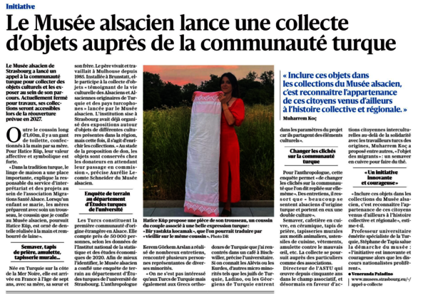 Le projet de coopération entre le Département d’études turques de l’Université de Strasbourg et le Musée Alsacien, porté par Kerem Görkem Arslan, consacré à la mémoire des Alsaciens originaires de Turquie, est à l’honneur dans les colonnes du journal Dernières Nouvelles d’Alsace (DNA) !